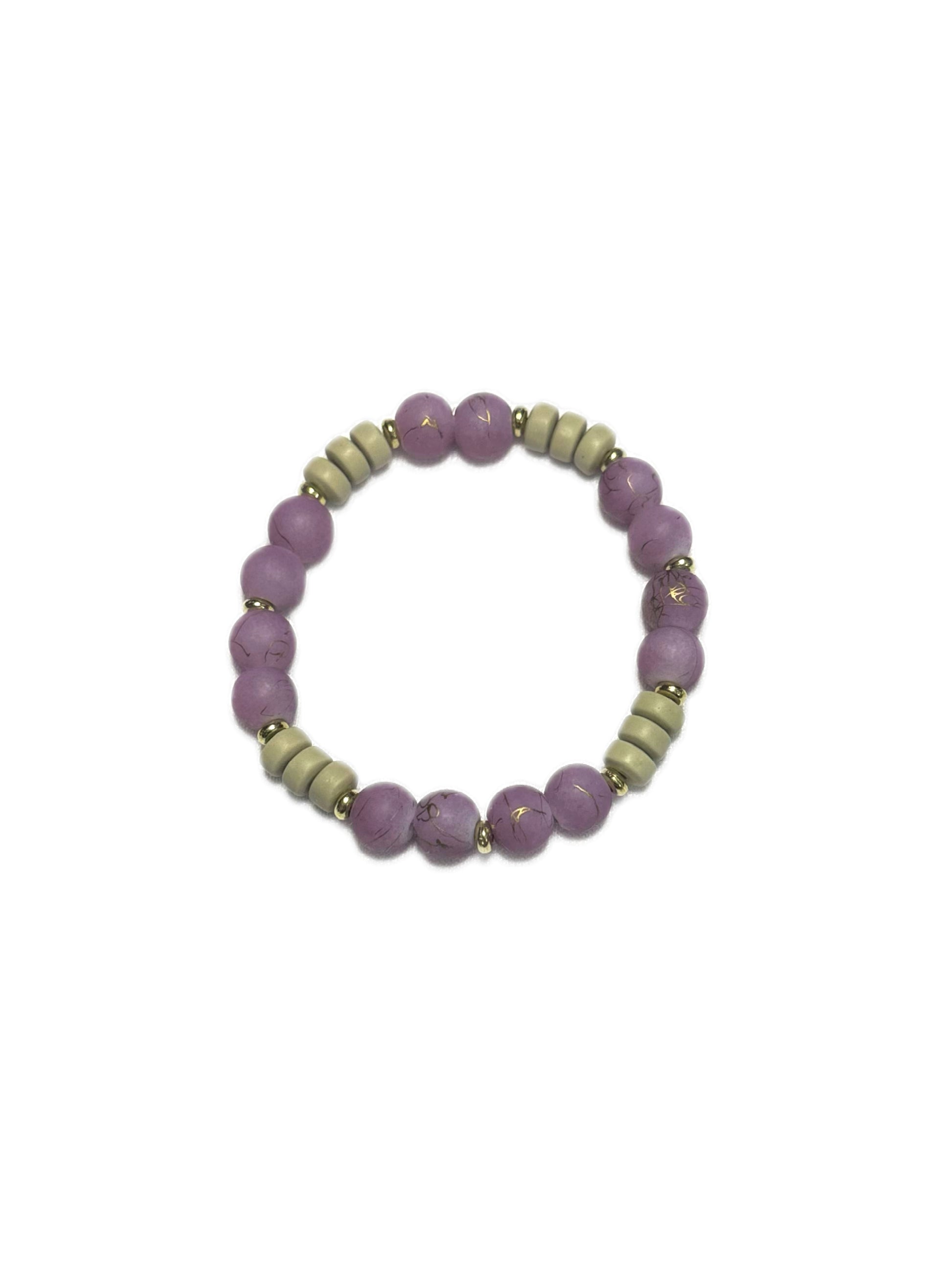 Made with glass beads and clay beads, this bracelet is the perfect mix of soft lilac and creamy neutrals — simple, calming, and just classy enough to distract from the chaos. The gold accents add a little “main character energy,” even if you’re just running errands and avoiding texts.