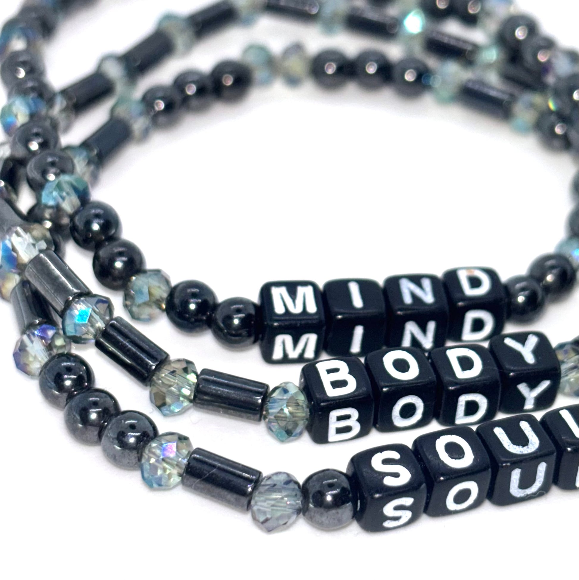 Mind • Body • Soul Bracelet Set – Hematite & Glass Beads