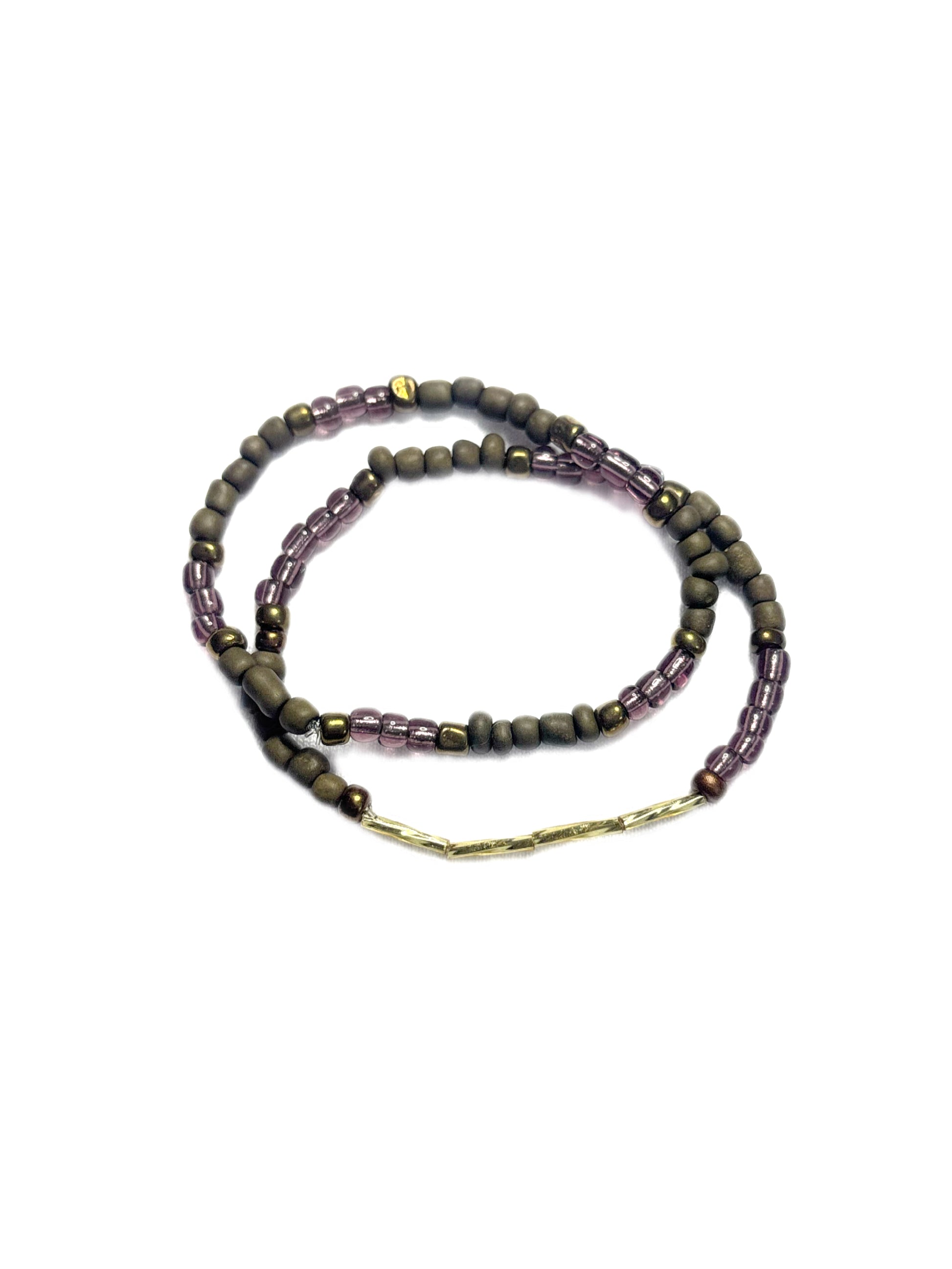 Two dainty stretch bracelets made with earthy brown and plum-toned glass beads — perfect for when you’re going for “put together” but your life says otherwise.